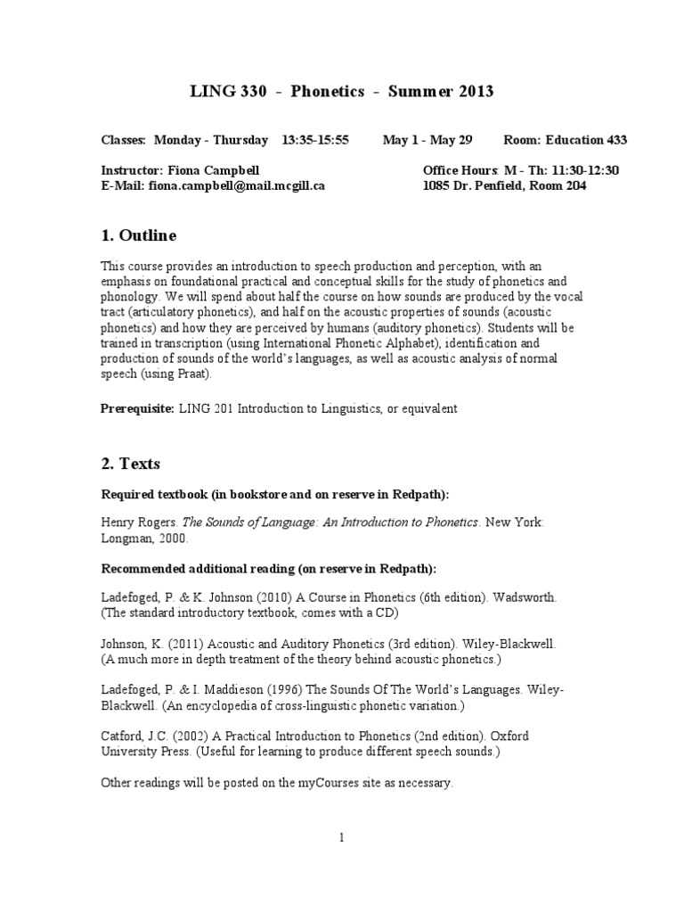 Thanks for watching !links10 nswish TPhttps//youtube/7pdQGHU8oHc9 Gamma 1https//youtube/P2LbDHb7kPU8 npesta's TPhttps//youtube/quDDiRY9jXQ7 Do1 Course Outline – LING 330 Phonetics General Information Course # 330 Term Fall Year 19 Course prerequisite(s) 1 or permission of the instructor Course corequisite(s) none Course schedule M, W, F Tuesday December 3 is the last lectureLING330 The module combines classic philosophical approaches with recent stateoftheart experimental evidence to address a central topic in modern cognitive science Does the language we speak affect the way we think?